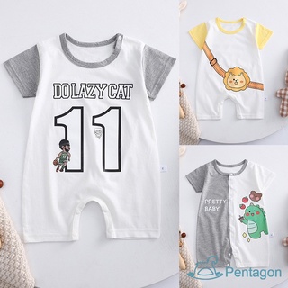 Bộ Áo Liền Quần Tay Ngắn Cổ Tròn In Họa Tiết Hoạt Hình Dễ Thương Cho Bé