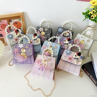 Vòng tay / túi đeo chéo họa tiết công chúa đính ngọc trai thời trang Hàn Quốc cho bé gái
