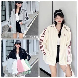 Áo khoác nỉ ngoại 3 sọc thêu 35 unisex [FREESHIP] Khoát hoodie zip form rộng tay bồng kiểu dáng thể thao peonyb ulzzang