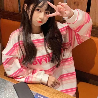 Áo Sweater Mỏng Dáng Rộng Kẻ Sọc Kiểu Hàn Quốc Thời Trang Mùa Xuân Cho Nữ