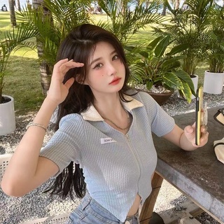 Áo thun ngắn Perty phối khóa kéo phong cách Hàn Quốc cho nữ