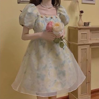 Đầm Tay Phồng In Họa Tiết Ngọt Ngào Thời Trang Cho Nữ