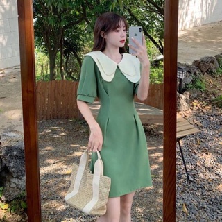 Đầm Tay Phồng Ngắn Chiết Eo Phong Cách Hàn Quốc Thời Trang Xinh Xắn Cho Nữ