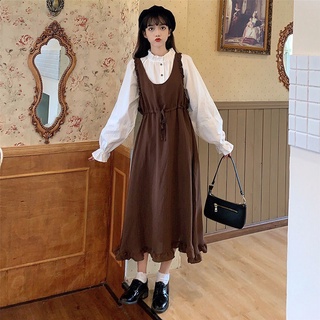 Set Đầm Hai Dây Phong Cách Retro Hàn Quốc Cho Nữ