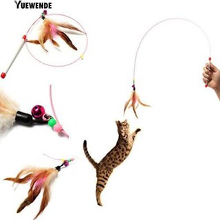 Đồ chơi cho mèo hình đũa dây xâu hạt bi và chuông phối lông vũ nhiều màu