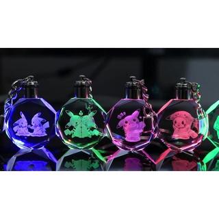 Móc khóa pha lê phát sáng tự động đổi nhiều màu LED RGB thủy tinh pokemon Pikachu doremon Tomorrow's Ark