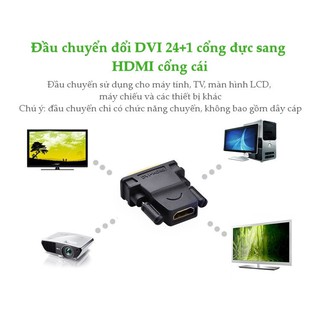 [HÀNG LOẠI 1] Đầu chuyển đổi DVI-D (24+1) cổng đực sang HDMI cổng cái UGREEN 20124