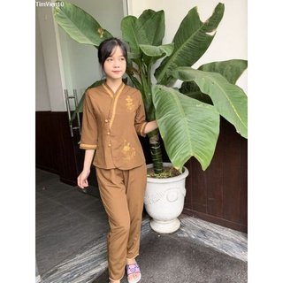 Quần áo đi chùa - Đồ phật tử - Cổ V nút ngọc thêu sen