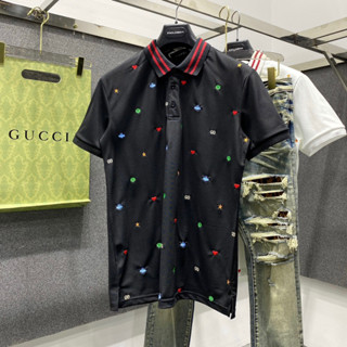 Áo polo nam cổ bẻ cotton gai GG dệt item ong tim mini 7 màu cổ sọc đỏ xẻ tà sang trọng cao cấp
