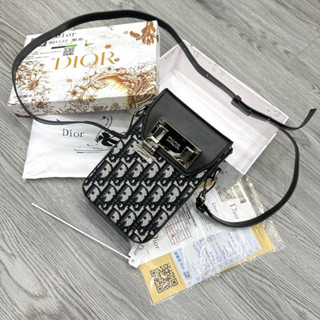 Túi đeo chéo nam nữ CD mini phối vải canvas dệt vân chữ monogram nắp da khoá bấm dây xách full box TC33P