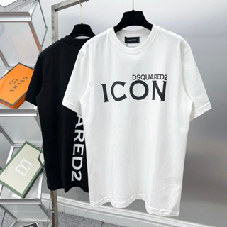Áo phông nam nữ cổ tròn in chữ ICON ngực phối chữ DSQ2 dọc lưng kiểu dáng đơn giản basic