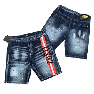Quần short bò ngố nam Dsq2 xanh bạc dập vạch sọc be đỏ thêu chữ da đen dọc quần vảy sơn rẻ đẹp