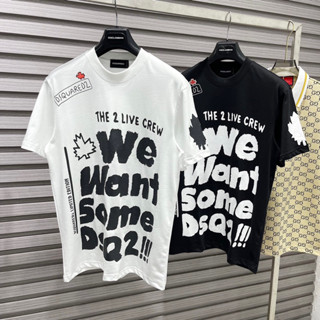 Áo phông nam nữ Premium Cotton in chữ We Want Some DSQ2 lá phong đen trắng cổ bo dày dặn cao cấp