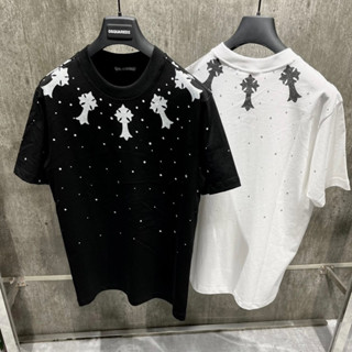 Áo phông nam nữ Premium Cotton in hình chữ thập Chrome Hearts chấm nhũ kim tuyến hai mặt streetwear