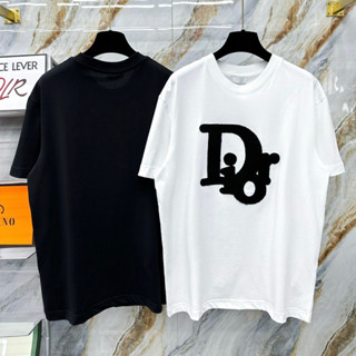 Áo phông nam nữ Premium Cotton thêu chữ CD lông bông xù đen trước ngực đơn giản đẹp