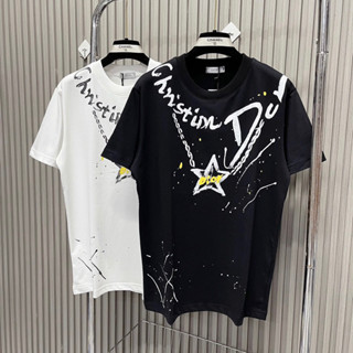 Áo phông nam nữ Premium Cotton in chữ CD dây vòng cổ ngôi sao vàng vảy sơn đen trắng streetwear