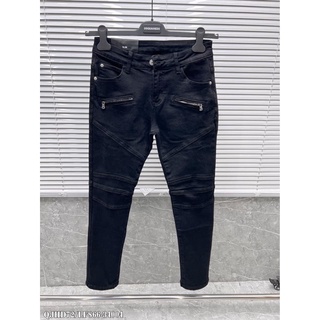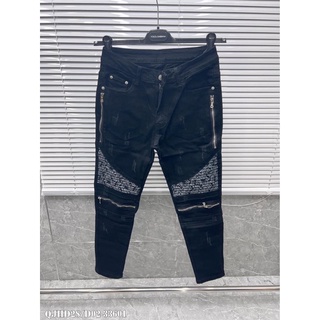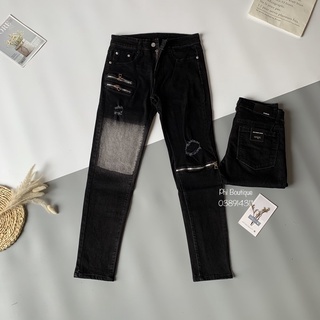 Quần Jean Biker Nam Pha Nhăn Da Khoá Zip Bản Cao Cấp QJ123P