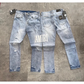 Quần Bò Amiri Nam Rách Xước Thêu Chữ Dọc Quần New QJ80P