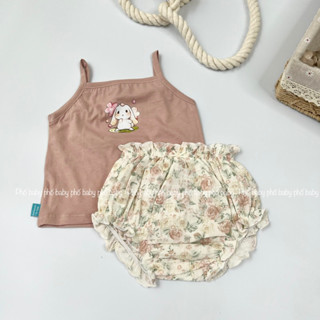 Bộ hai dây bé gái vải cotton Hàn độ co giãn tốt, mềm mại cho bé