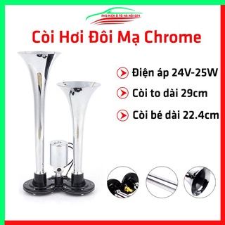 Còi hơi đôi mạ Chrome kèn hơi 24V màu bạc cho ô tô xe máy