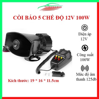 Còi hú cảnh sát kèn báo động 5 tiếng 12V dùng cho xe ưu tiên công suất lớn 100W