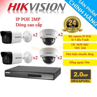 Bộ Camera 5/6/7/8 Mắt IP POE HIKVISION 2.0MP [ TÍC HỢP MIC ] - Hàng Chính Hãng, Bảo Hành 24 Tháng