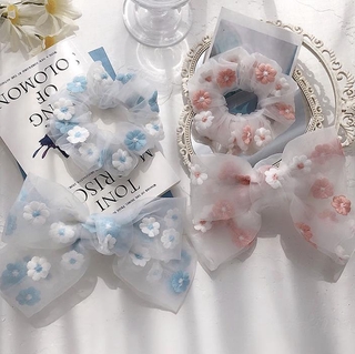 Kẹp tóc bản lớn thêu hoa màu hồng/xanh dương lãng mạn