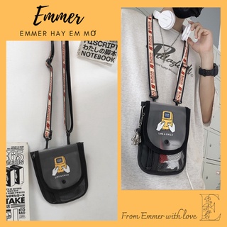 Túi canvas mini đeo chéo phối dây họa tiết, túi học sinh đi chơi bao ngầu Emmer191