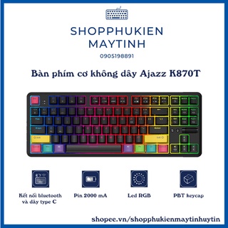 Bàn phím cơ Bluetooth không dây AJAZZ K870T led RGB (Màu sắc: Black / White|Switch: Blue/ Brown/Red) - Bảo hành 12 tháng