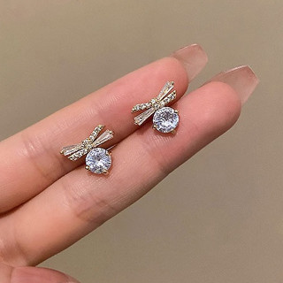Bông tai nơ đính đá chuôi bạc 925 cao cấp dành cho nữ - Mely VV54