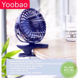 [ Dùng liên tục 32 tiếng ] quạt sạc tích điện hÃng yoobao kẹp xoay 360 độ F04 dung lượng 6400mah