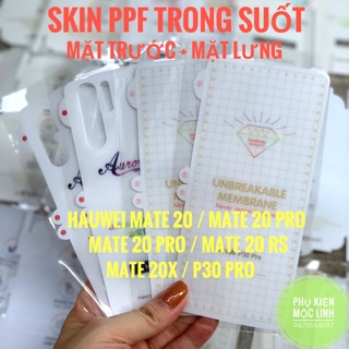 Miếng skin dán dẻo ppf tự phục hồi trầy xước cho mặt trước và lưng Hưaei Mate 20 Mate 20 pro P20 Pro Mate 20x P30 pro
