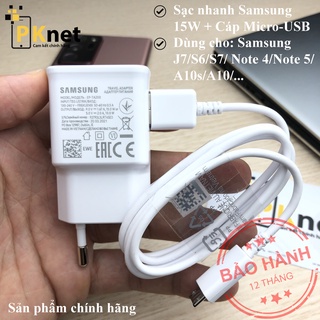 Bộ sạc nhanh Samsung 15W A10s /J7 Prime/ J3/J5/J7/ S6/S7/ Note 4/Note 5...[Chính hãng] + Cáp sạc Micro-USB