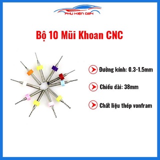 Hộp 10 mũi khoan CNC cao cấp độ chính xác cao đường kính mũi 0.8mm