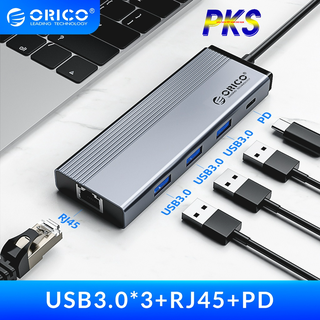 Đế cắm đa năng 5 trong 1 cổng Type C ra 1 cổng mạng LAN RJ45, 3 USB 3.0, 1 PD Type-C Orico 5SXRJ-GY - Hàng chính hãng