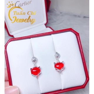 Bông Tai Bạc ⚡HÀNG SẴN⚡ Khuyên Tai Bạc Hồ Ly Cao Cấp, Kết Hợp Đá Phong Thủy Theo Mệnh