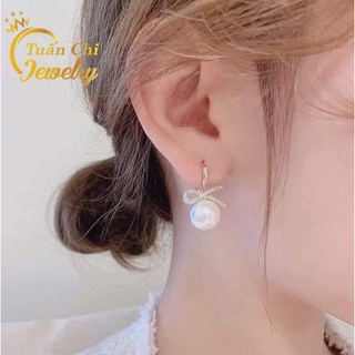 Bông Tai Nữ- Khuyên Tai Bạc Đính Ngoc Trai Sang Trọng, Đeo Được 2 Kiểu Cá Tính