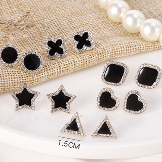 Bông tai đen nhiều kiểu đính hạt trong suốt sang trọng YU05