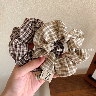 Cột tóc vải scrunchies sọc CARO NÂU ĐEN đơn giản thời thượng hàn quốc S31