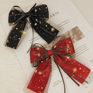 Kẹp tóc nơ lưới hoa tuyết ĐỎ ĐEN ngôi sao rực rỡ đáng yêu K71