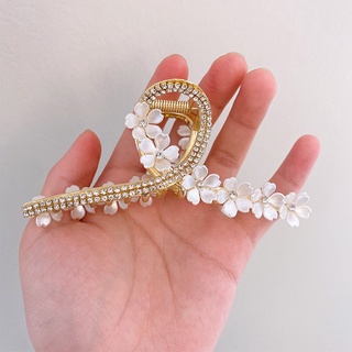 Kẹp tóc càng cua hoa trắng đính hạt châu lấp lánh sang trọng K44