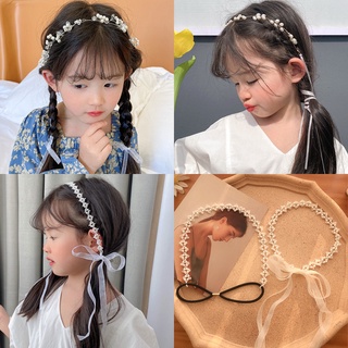 Băng Đô Bện Hoa Đính Ngọc Trai Đơn Giản Cho Bé Gái