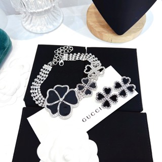 Set trang sức nữ choker và hoa tai nữ màu đen đính đá cao cấp - R9060