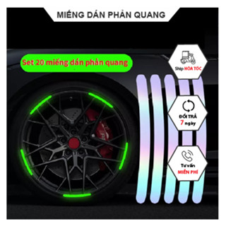 Set 20 miếng dán dạ quang trang trí vành xe hơi, Miếng dán phản quang trang trí bánh xe ô tô, xe máy độc đáo