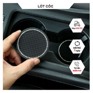 Miếng Lót Cốc Ô Tô Đính Đá Trang Trí Nội Thất Xe cao cấp, Đế lót cốc cao su đính đá xe hơi, Tấm Lót cốc Đính Đá