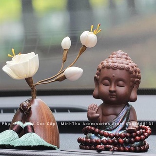 Tượng Phật Thích Ca và Mộc Liên Hoa Sen Hồng Để Ô Tô Trang Trí Taplo Ô Tô Cao Cấp