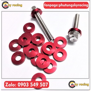 Lông đền nhôm màu 6li gắn ốc lốc trang trí cho nhiều dòng xe (màu đỏ)