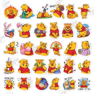 Combo 30 sticker hình dán chống nước chủ đề gấu vàng Pooh dễ thương