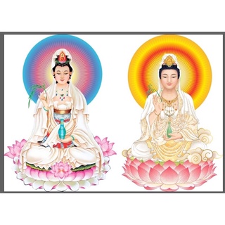 Hình Phật Thích Ca, Phật Dược Sư, Quán Thế Âm Bồ Tát, Thiên Thủ Thiên Nhãn kích thước 50cm x 33cm, decal chống nước.