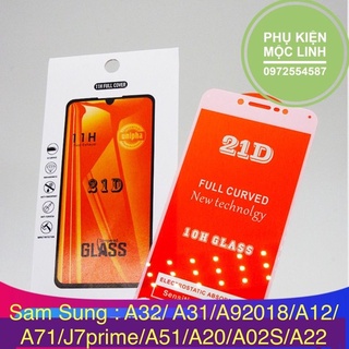 Kính Samsung Full Màn 21D - A12 / A22 / A02S / A20 / A51 / A71 / A31 / A32 / A9 2018 / J7 Prime [ Tặng Kèm Giấy Lau ]